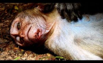 In the quiet shade of the mountain forest, a heartbreaking moment unfolds. A newborn baby monkey, still tiny and weak, tries to cling to his mother’s fur. His eyes are …